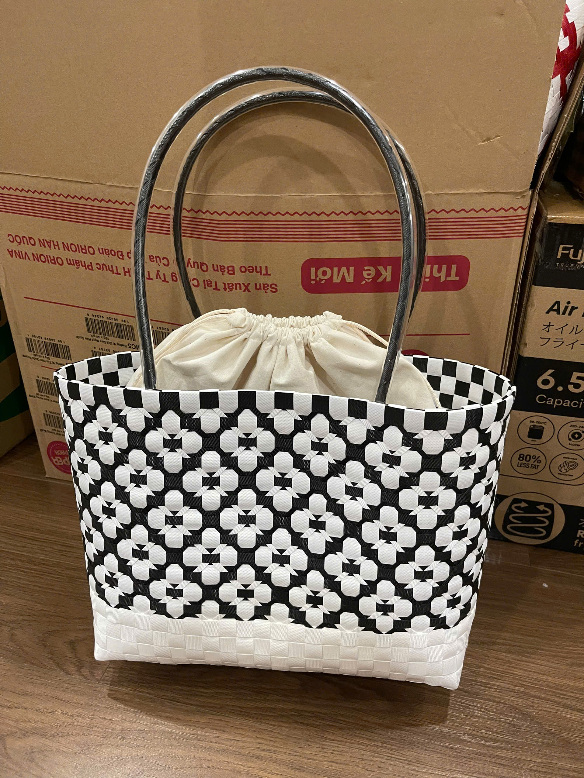 Túi cói thủ công dáng trơn, không nắp, phong cách đơn giản, phù hợp đi chơi và đi làm.
